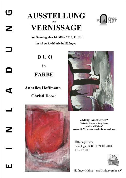 Gemeinschaftsausstellung mit Annelies Hoffmann im Alten Rathaus Höfingen 14. + 21. März 2010